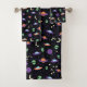 UFO Alien fliegt im All mit Planeten und Sternen.