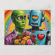 Alien und Robot Couple Postkarte