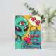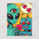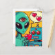 Alien und Roboter in Liebe Retro Comic Postkarte