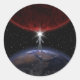 Graue Alien zwischen der Erde und einem Mars-ähnlichen Planeten.