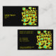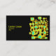 Ein Geschäft/eine Visitenkarte mit einem bunten abstrakten Netzwerk wie Struktur vielleicht erinnert an eine Schaltung oder Karte irgendeiner Art. Digital in Gelb und Türkis lackiert mit einem roten Offset, wodurch es einen Offset-Schablone-Look erhält. Das Design wurde teilweise mit digitalen Ölfarben-Effekten erstellt, was ihm einen ansprechenden handgemalten Schablonenlook verleiht. Der Text wurde sowohl auf der Vorderseite als auch auf der Rückseite in dieser Version angeordnet.