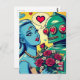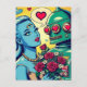 Alien Woman und Robot in Liebe Retro Comic Postkarte