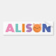Der Name Alison mit dem Buchstaben O als Kopf einer Katze. Jede einzelne Farbe des Textes kann geändert werden, ebenso wie der Kopf der Katzen.