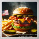 Genießen Sie mit dieser köstlichen Kreation den reinen Hamburger-Genuss. Eine dicke, saftige Rindfleischpartie, gegrillt bis zur Perfektion, wird mit geschmolzenem Cheddar-Käse, knusprigem Speck, frischem Salat, reifen Tomatenschnitzeln und zartem Gemüse geschichtet. Alle sind zwischen einem gerösteten Sesam-Samenbrunnen eingebettet und mit einer Seite von goldenen, knusprigen Pommes frites serviert. Eine Miniatur-amerikanische Flagge fügt eine patriotische Touch hinzu, die eine echte Feier der klassisch amerikanischen Aromen macht.