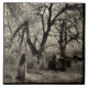 Crow in einem verwinkelten Friedhof auf einem alten Grabstein sieht aus wie eine Halloween-Szene auf einer Kachel.