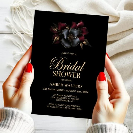 Machen Sie ein Statement mit unserer schwarzen All-in-One-Hochzeitseinladung mit einem bordeauxroten und grauen Blumenmotiv. Dieses Design Set den Ton für ein unvergessliches Fest. Der anpassbare Text erlaubt es Ihnen, die Namen der Braut und des Bräutigams, das Hochzeitstag und die nötigen Details Ihrer Feier mühelos hinzuzufügen. Für das preisbewusste Ehepaar, den Empfang-Veranstaltungsort, die Anfrage auf UAWG, die Unterkunftsdetails und alle weiteren Informationen, die Ihre Gäste benötigen, können Sie auf der Rückseite dieser Einladung einschließen und Geld für zusätzliche Schreibwaren gerettet werden. Für Ihre einmaligen Einladungen stehen verschiedene Papiertypen und Eckstile zur Verfügung.