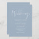 Diese elegante Skript dusty Blue Hochzeitseinladung kann mit Ihren Informationen in chic Typografie personalisiert werden mit Ihren Angaben auf der Hochzeitswebsite und Ihrem QR-Code auf der Rückseite. Entwickelt von Thisisnotme©