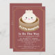 Diese süße, geschlechtsneutrale Babyparty-Einladung "ein kleines Klößchen auf dem Weg" zeigt ein Klößchen mit einem lächelnden Gesicht in einem chinesischen Dampftopf auf rotem Hintergrund. Die Rückseite enthält die Party-Details und einen QR-Code zu Ihrer Geschenkeliste. Passende Artikel in unserem Shop für ein komplettes Party-Thema.