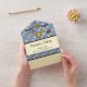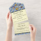 Diese Einladung mit herausnehmbarer RSVP-Karte eignet sich hervorragend zum inspirier von Träumen und bietet einen Hintergrund aus blassblauen Streifen in zwei Tönen und weichen gelben Sternen. Hinter diesem Muster befinden sich hellgelbe Tafeln mit schwarzem Rand, die eine Basis für Mustertexte im Inneren bilden, die für Ihre Veranstaltung angepasst werden können, und ein Leerraum auf der Außenseite, der für die Kartenadressierung an den Empfänger und den rückgabefähigen Bereich mit der entsprechenden Rücksendeadresse verwendet werden kann. Schließlich sitzt ein spielerisches, weltraumorientiertes Handy mit einem Halbmond, Sternschnupfen, heller Sonne, Raketenschiff und einem bunten Planeten, der von Armen mit blauen und lila Zickzack-Details und einem Stern mitten in der Mitte hängt, auf den Flaps mit einer Probe, die in der Sonne anfängt, um eine endgültige individuelle Touch hinzuzufügen. Verpassen Sie nicht, die komplette Dreams of Space Mobile Kollektion für weitere tolle Geschenke und Produkte für eine Babydusche oder die kleine Dusche in Ihrem Leben auszuprobieren.