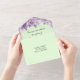 Klassische und elegante Lilacs & Sage All in one Einladung Diese klassische und elegante Hochzeit in einer Einladung ist perfekt für ein einfaches und elegantes Hochzeitsthema. Der lila Rahmen erhöht die Einfachheit des Single-Farbton-Hintergrundes und hebt die wichtigen Details Ihrer Veranstaltung hervor. Jedes Testfeld kann bearbeitet werden, um der Einladung eine persönliche Touch hinzuzufügen. Es wird Platz für Sie zur Notiz Ihrer Website und auch, wenn Sie einen QR-Code haben, um Ihre Gäste mit Informationen zu unterstützen.