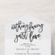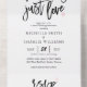 Nichts extravagant nur Liebe lässig Hochzeitseinladung. Das Design besticht durch ein elegantes, modernes Textlayout. Um erweiterte Änderungen vorzunehmen, wählen Sie bitte unter Personalisieren dieser Vorlage die Option "Klicken Sie auf, um weitere Anpassungen vorzunehmen".