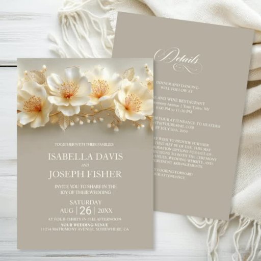 All in One White and Gold Floral Wedding Einladung