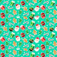 Ein lebendiges Urlaubsmuster mit Weihnachtsbäumen, Geschenken und Lebkuchen.