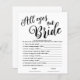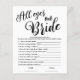 Machen Sie Ihr Brautparty mit dem All Eyes on Bride Simple Brautparty Game unterhaltsam und unvergesslich. Dieses unterhaltsame und interaktive Spiel soll Ihnen Lachen, Freude und ein wenig freundlichen Wettbewerb bringen. Das "All Eyes on Bride"-Spiel ermutigt die Gäste, sich auf die Braut zu konzentrieren, Fragen zu beantworten oder darstellende Aufgaben zu erledigen, die sich um sie drehen. Es ist ein perfekter Eisbrecher, der alle zusammen bringt. Einfache Anweisungen machen dieses Spiel für alle Altersgruppen geeignet. Keine komplizierten Regeln, nur einfach Spaß, den jeder genießen kann. Die Spielkarten zeichnen sich durch ein gepflegtes, elegantes Design aus, das jedes Brautparty-Thema ergänzt. Weiche, feminine Farben und geschmackvolle Typografie verleihen Ihrem Event eine Touch der Eleganz.