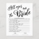 Alle Blicke auf das Bride Simple Bridal Game - hier ist eines der gängigen Brautparty-Spiele, um Ihren Gästen eine gute Zeit zu geben. Da es als Vorlage vorbereitet wird, können Sie es nach Ihren Wünschen/Bedürfnissen personalisieren. FÜR WEITERE SPIELE MIT DEM GLEICHEN DESIGN schreiben Sie G317 in der Suchbox meines Shops. Danke, dass du meinen Laden besucht hast! Für den Fall, dass Sie etwas über Design brauchen, können Sie mich kontaktieren: szdesigns2021@gmail.com