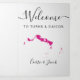Willkommen zu Ihrer Hochzeit mit dieser dreifach gefliesten Karte. Es gibt genügend Platz für Ihre Reiseroute, Restaurantempfehlungen, Aktivitäten und Kontaktdaten. Auf der Kartenrückseite ist Platz für ein Foto. Alle Texte können individuell angepasst werden, einschließlich der Überschrift. Sie können die Farben für jeden Teil dieses Designs bearbeiten und das Herz an den Ort Ihrer Hochzeit bringen. Klicken Sie zum Ändern der Farben auf Personalisieren und dann auf "Bearbeiten mit dem Entwurfstool". Wählen Sie das Element aus, das Sie bearbeiten möchten, und verwenden Sie dann die Tools, um die Änderungen vorzunehmen.