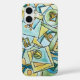 Alle Formen und Größen-Stilvolles iPhone 16 Gehäuse mit handgemalten modernen Bauhaus geometrischen Wasserfarben Kunst in Blau, Grün und Gelb