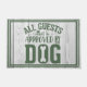 Diese niedliche und lustige Begrüßungsmatte für Hundefreunde ist mit einer modernen und trendigen Typografie versehen, in der steht: "Alle Gäste müssen vom Hund zugelassen werden." Der Text und die doppelte Grenze sind in einem klugen Grün gehalten und der Hintergrund ist in einem grauen Holzstil gehalten. Perfekte Geschenkidee für Hundefreunde.