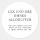 Stickers mit dem lateinischen Zitat "lex uno ore omnes alloquitur", das zu "das Gesetz spricht mit einem Mund zu allen" übersetzt. Ein inspirierendes Gesetz zitiert, dass vor dem Gesetz jeder gleich ist.