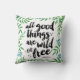 Alle guten Dinge sind wild und frei. Design zeigt das Zitat in knusprigem, schwarzen Pinselstrich-Text, umgeben von Dschungelgrün botanischen Blätter in Aquarell.