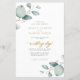 Elegante rustikale botanische chic schöne Weise grün Aquarell Eukalyptus Blätter preiswert alles in einer Hochzeitseinladung mit handgeschriebenen Imitate Gold Kalligraphie-Skript und Scannen QR-Code auf Ihrer Website für alle Details und UAWG online.