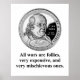 Design mit einem Bild von Benjamin Franklin und dem Zitat: Alle Kriege sind Torheiten, sehr teuer und sehr schelmisch.