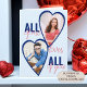 Erstellen Sie Ihre eigene Valentinstag-Karte, die Sie mit 2 Ihrer Lieblings-Fotos anpassen können. Die Fotovorlage zeigt Ihre Bilder in Herzformen, gerahmt in Blau. Das Design lautet "ALL I, Lieben All YOU" in modern überdimensionierten Printmedien und lässiger Schriftzeichen. Im Inneren der Karte steht "Happy Valentine's Day" und Ihre personalisierte Nachricht, die Sie alle bearbeiten können, wie Sie möchten.
