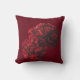 Rotes, bordeauxrotes Kissen mit roten Blume.