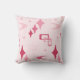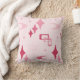 Dieses Kissen ist mit einem modernen Muster von Diamanten, Bumerangs, atomarem Symbol in Rosatönen für einen lustigen Retro-Look der 50er Jahre.