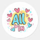 Machen Sie eine kühne Aussage mit unserem "All In" Graffiti-Style Round Sticker! Dieser Aufkleber mit lebendigen, von Street Art inspiriert Schriften eignet sich perfekt für alle, die ihren Leidenschaften, Zielen und dem Alltag nachgehen. Express Yourself - Egal, ob Sie Unternehmer, Künstler oder Traumschaffende sind, dieser Aufkleber ist eine tägliche Erinnerung, um engagiert bleibe und alles zu machen. Halte es fest. Besitze es. Geh rein!