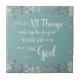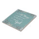Keramikfliese mit beunruhigter weißer Typografie auf dem strukturierten Aquahintergrund umgeben durch Watercolor-Blumen, mit weithin bekanntem Vers vom Römer-8:28, "… Alle Sachen arbeiten für gutes für die zusammen, die Liebe Gott…"