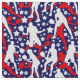 Blau, rot und weiß mit den Silhouetten der Pickleball-Spieler auf blauem Hintergrund.