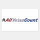 Die Wörter, All Votes Count, sind in den Farben rot, weiß und blau geschrieben und in schwarz auf Aufklebern dargestellt. Es gibt einen schwarzen Hashtag, der den Worten vorausgeht, um die Menschen zu ermutigen, diesen Satz zu verwenden, um den Wahlprozess in den Vereinigten Staaten zu ändern, wo alle Stimmen zählen. Vielen Dank für Ihren Einkauf bei CherylsArt auf Zazzle.