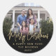 Fügen Sie Weihnachtsgeschenke, Weihnachtskarten und Gastgeschenke eine stilvolle Touch hinzu, die mit modernen Foto-Rundaufklebern / Umschlag Aufklebern ausgestattet ist. Das Bild und der gesamte Text auf dieser Vorlage sind einfach zu personalisieren mit jedem beliebigen Text, wie zum Beispiel frohe Weihnachten, glückliche Feiertage, Frohe Festtage oder glückliches Neues Jahr. Ändern Sie als Option die Skripttypografie in Ihren Namen, und verwenden Sie die Erholung für Ihre Rücksendeadresse oder spezielle Nachricht. Das Schwarz-Gold-Design besticht durch moderne handgeschriebene Skriptkalligraphie, klassisch minimalistische Sans-Serif-Typografie und ein Foto Ihrer Wahl. Bitte beachten Sie, dass Gold farblich gedruckt ist, nicht metallische Folie. Diese einzigartigen Aufkleber können auch elegante Geschenketiketten sein, Liebesmarken oder Umschlag Aufkleber für Ferienkarten oder Party Einladungen. Frohe Weihnachten und viel Glück ins neue Jahr!