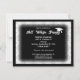 Dieser einzigartige Text der ZeitgenosseAusrüstungsbeschreibungen, der liest: "Alles weiße Party". Es gibt eine weiße Silhouette-Abschlusskappe, die auf dem "ty" "im Party" sitzt. Ein Schwarzweiss-Damasthintergrund, der durch einen schwarzen Rahmen ergänzt wird, schließt den Blick dieser themed Party Einladung ab. Es gibt viel des kundengerechten Textes, damit Sie Ihre Partyinformationen addieren. Die Rückseite dieses der PrämienAusrüstungsbeschreibungen die gleiche Hintergrundgraphik.