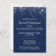 Moderne und elegante Einrichtung mit blauem Hintergrund und silbernen Sternen. Sie können den Text für jeden Anlass leicht anpassen. Weitere Informationen unter zazzle.com/GlitterInvitations