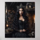 Allegra Die Königin der Hexen, wenn wunderschöne Anzeige ihrer Krone. So schön mit langen schwarzen, gewellten Haaren, die ihr den Rücken abfließen. Sie hat ein makelloses Gesicht mit schönen Augen, die mit schwarzen und dunklen Lippen hervorgehoben sind. Sie trägt ein ausgeklügeltes schwarzes Kleid. Sie ist umgeben von den Geräten ihres Handwerks, Kerzen, Zauberbüchern, Zutatengläsern, die Dinge enthalten, die man lieber nicht weiß, was es ist. Erstellt mithilfe von AI.