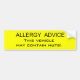 Allergie-Rat - dieses Fahrzeug kann Nüsse enthalten. Auto, das Nüsse enthält. Warnzeichen.