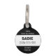 Das Bewusstsein für die Lebensmittelallergien eines Hundes verbreiten. Desteis originelle Cartoon-Illustration eines Fisch-, Fleisch- und Käseschnittes in schwarzer Farblinie. Oben steht "Allergy Alert!" und am Ende steht "Auf eine strikte Diät!". Auf der anderen Seite gibt es personalisierbare Textbereiche für einen Namen und eine Telefonnummer. Es gibt auch zwei personalisierbare Textbereiche, die nun lauten: "Ich habe Lebensmittelallergien!" und "Füttre mir nicht!". Die Farbe Schwarz/Weiß.