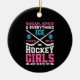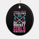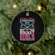 Hockey-Thema-Ornament für das Hockeymädchen mit Hockeypucks, Stöcken und Helmen mit rosa, weiß und blau Text, der Zucker, Gewürz und alles Eis, das ist, woraus Hockey Girls gemacht sind!
