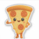 Pizzaschnitt im Stil eines Cartoon mit Daumen.