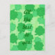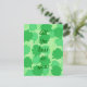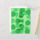 Gemälde einer Collage aus Kleeblättern, vierblättrigen Kleeblatten, in verschiedenen grünen Farbtönen, mit der Nachricht, Alles Gute für Sie, auf Postkarten gedruckt. Kann mit einer anderen Nachricht und/oder einem anderen Schriftart angepasst werden.