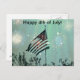Eine besondere Postkarte für den Unabhängigkeitstag. Es hat eine amerikanische Flagge und einige Sterne und Feuerwerke.