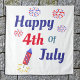 Das stilvolle, patriotische Amerikanische Unabhängigkeitstag-Urlaubsskript "Happy 4th of July" mit dem Design eines individuellen Mason Jar-Designs in Rot-, Blau- und Marineblau mit gefeierten Feuerwerken