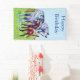 Diese Stofffahne hat ein hübscher Pastell farbiges Mutterpferd, einen hölzernen Zaun im Gras entlang Seite ihr braunes Babycoltpferd unter einem blauen Himmel bereitzustehen. Fertigen Sie den alles Gute zum Geburtstagtext mit der Schablone besonders an.