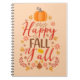 Farbige Illustration mit "Happy fall y'all" Textdesign und Blume, Kürbis und Blätter für alle, die gerne fallen