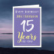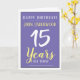 15 Jahre alt. Herzlichen Glückwunsch zum Geburtstag eines fünfzehnjährigen. Personalisieren Sie Ihre Daten mit Name und Nachricht.