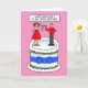 Ein Cartoon männlicher und weiblicher Zwillinge, stehend auf einem Riesenkuchen, der Cocktails trinkt. Die Frau ist Sprichwort 'Glücklicher Geburtstag zu meinem Zwillingsbruder'.