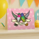 Eine fröhliche Geburtstagskarte mit zwei farbenfrohen Kolibri-Freunden, die ein Band mit einer Nachricht tragen. Verwenden Sie "Personalisieren Sie diese Vorlage", um den Text "Glücklich Geburtstag!" zu ändern, falls gewünscht. Basierend auf dem Golden-Schwänzchen-Saphir und den Broad-Schwanz-Kolibris. Im NoodleWings Store sind passende Packpapiere, Papiertaschentücher, Aufkleber und Geschenketiketten erhältlich.