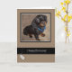 Dieser niedliche schwarz-braune Welpe wünscht Ihnen viel Spaß beim Geburtstag!